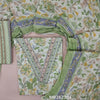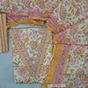 Lavender printed soft cotton unstitched salwar material, v neck with french knot and faux mirror (lining needed)printed cotton bottom, floral printed crinkled mul cotton dupatta. MR262302