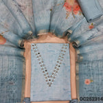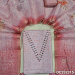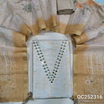 Digital abstract printed light Beige silk cotton unstitched salwar material (silky, Lining Needed) real mirror & bead work on yoke, matching silky bottom, digital printed silk cotton dupatta. OC252316