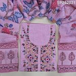Light Beige printed premium linen unstitched salwar material, hand embroidery work on yoke (Textured, Lining Needed) Matching Santoon Bottom, Colorful printed dupatta with heavy hand embroidery Detailing . SP242020