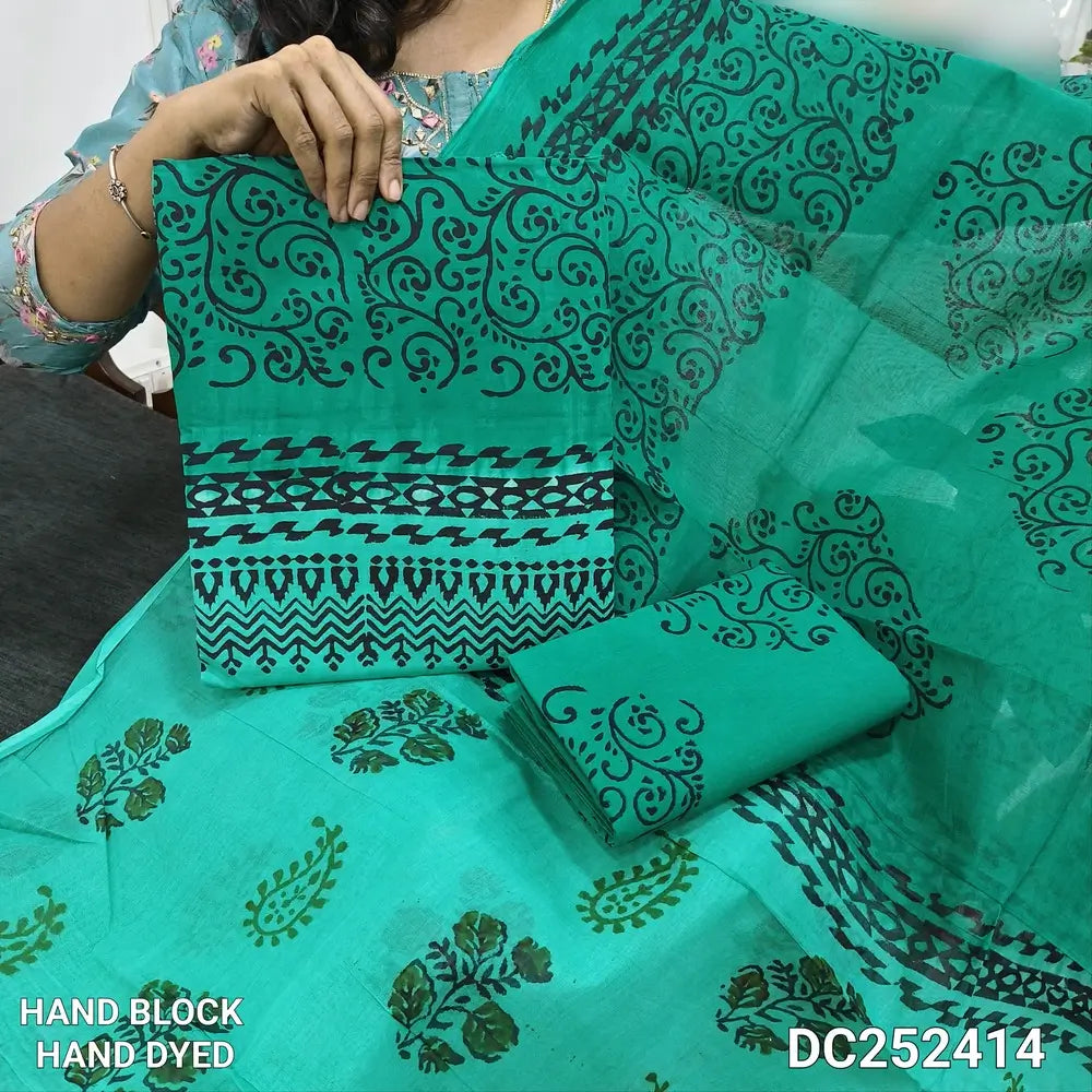Light & dark Turquoise Green pure cotton unstitched salwar material (lining needed) hand block printed allover, printed cotton bottom, block printed dual shade dupatta. DC252414 (over lapping of prints not consider as a defect)