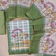 Light green semi linen unstitched salwar material (lining needed)printed yoke with zari and real mirror work, self checked design all over, printed daman, printed cotton bottom, printed semi linen dupatta. FB261310
