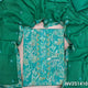 Light turquoise green fancy jute silk unstitched salwar material(textured, lining needed)real mirror work on yoke,leafy and floral printed all over, silk cotton bottom, thread and sequins work on fancy chiffon dupatta with tapings. NV251410