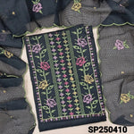 Dark maroon fancy kota silk cotton unstitched salwar material, cross stitch embroidery on yoke(lining needed)matching silky fabric provided for both bottom& lining, embroidered fancy kota silk cotton dupatta with scallop edges. CODE SP250411