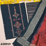 Dark maroon printed handloom cotton unstitched salwar material, embroidered on yoke(lining needed)printed cotton bottom, block printed dual shaded pure mul cotton dupatta. CODE JL253118