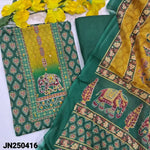 Maroon printed soft cotton unstitched salwar material, zardozi& sequins work on yoke(lining needed)matching lining provided, NO BOTTOM, digital printed mixed cotton dupatta. CODE JN250415