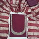 Dark Maroon soft silk cotton unstitched salwar material (Lining needed) cut, sugar bead, sequins on yoke, matching silky bottom, tissue lines silk cotton dupatta. NV250705