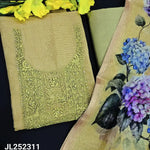 Brownish mauve designer pure kota unstitched salwar material, hand embroidered on yoke(thin, lining needed)matching santoon bottom, digital printed premium kota silk cotton dupatta with tissue borders. CODE JL252312
