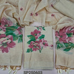 Rich Mauve & Grey jamdani woven premium silk cotton unstitched salwar material, gold tissue border on daman(thin, lining needed)matching silk cotton bottom, jamdani woven premium silk cotton full length dupatta with hand made tassels. NV253020