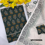 Dark mauve printed pure soft cotton unstitched salwar material(lining optional)embroidered jute flex cotton bottom, block printed fancy silk cotton short width dupatta with applique work. CODE MY250508