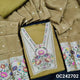 CODE OC242702 : Mehandhi green designer pure dola silk unstitched salwar material, rich paithani design on yoke(shiny fabric, lining needed)matching santoon bottom, pure tissue organza silk dupatta with zari buttas& paithani weaving borders.