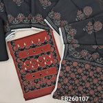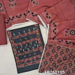 Mehandhi Green premium satin cotton unstitched salwar material (lining optional) hand kantha stitch, applique work on yoke, maroon cotton bottom, block printed silk cotton dupatta with lace tapings. FB260106