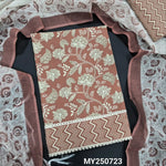 Light mehandhi yellow floral printed soft cotton unstitched salwar material, lace work on daman(lining optional)zigzag printed cotton bottom, block printed fancy super net dupatta(REQUIRES TAPINGS). CODE MY250722