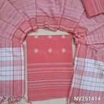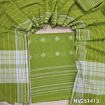 Mehandhi yellow handloom cotton unstitched salwar material (Lining Needed)thread woven design on front,thread weaving daman borders, thread weaving handloom cotton bottom, light and dark shaded soft handloom cotton dupatta. NV251415