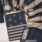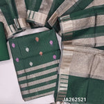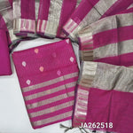 Mehandhi Yellow soft Benarasi silk cotton unstitched salwar material(lining needed) colorful buttas, zari lines allover, tissue line daman, matching silk cotton bottom, tissue silk cotton dupatta with tassels. JA262520
