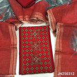 Mehandhi yellow soft silk cotton unstitched salwar material, rich embroidered& cut work on yoke(lining needed)matching spun cotton bottom, digital printed semi linen dupatta with tissue borders. CODE JN250311
