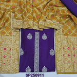 Mehandhi yellow soft silk cotton unstitched salwar material, zari embroidery on front(thin, lining needed)matching silk cotton bottom, silk cotton dupatta rich meenakari zari woven design. CODE SP250912