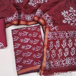 Mossy Green soft silk cotton unstitched salwar material (lining needed) batik dyed allover, tissue border on daman, matching wax batik cotton bottom, batik dyed full length silk cotton dupatta.(TAPING NEEDED). DC252009