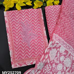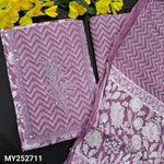 Light mossy green printed soft cotton unstitched salwar material, bead& sequins work on yoke(lining optional)printed cotton bottom, printed crinkled soft mul cotton dupatta. CODE MY252708