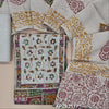 Multi color abstract printed pure kantha cotton unstitched salwar material,(BEIGE & GREY) applique work and thread embroidery on yoke(lining needed)flex cotton bottom, applique work and block printed premium fancy silk cotton dupatta. AP262514