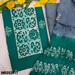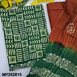 Navy blue original wax batik dyed pure soft cotton unstitched salwar material(lining needed)mossy green batik dyed cotton bottom, dual shaded original wax batik dyed pure cotton dupatta(REQUIRES TAPINGS). CODE MY252819