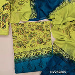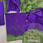 Orange & Peach premium georgette unstitched salwar material (flowy, Lining needed) hand block print allover, printed santoon bottom, dual shade fancy chiffon dupatta with hand block print. NV252806