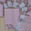 Pale pink with silver tint premium tissue silk cotton unstitched salwar material,embroidery on front, cross stitch embroidery daman(lining needed)spun cotton bottom,embroidery on tissue silk cotton dupatta with cross stitch & silver zari borders. AP261113