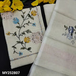Pastel blue designer premium kota silk cotton unstitched salwar material, rich work on yoke(thin fabric, lining needed)matching lining provided, NO BOTTOM, brush painted premium kota silk cotton dupatta. CODE MY252808