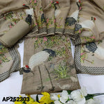 Pastel blue designer tissue linen unstitched salwar material, printed v neck, hand embroidered on yoke(thin fabric, lining needed)matching santoon bottom, digital printed tissue linen dupatta with hand embroidered. Code AP252304