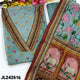 Pastel blue digital printed silk cotton unstitched salwar material, v neck with Katha stitch(lining needed)matching spun cotton bottom, printed silk cotton dupatta with kantha stitch &sequins. CODE JL242616