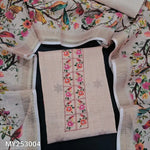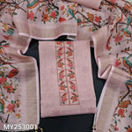 Pastel blue digital printed tissue silk cotton unstitched salwar material, thread& faux mirror work on yoke& front(thin, lining needed)matching santoon bottom, digital printed tissue silk cotton dupatta with tissue borders. CODE MY253003