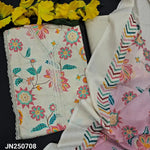 Pastel blue floral printed soft cotton unstitched salwar material, lace work on front with panel pattern(lining needed)matching spun cotton bottom, dual shaded soft mixed cotton dupatta. CODE JN250707