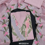 Pastel blue premium kota unstitched salwar material, v neck with rich embroidered on yoke(thin, lining needed)matching santoon bottom, embroidered premium kota dupatta. CODE MY252211