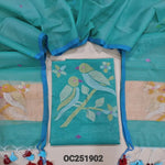Pastel Blue Muslin Jamdani unstitched salwar material, heavy hand Weaving yoke (Thin, Lining Needed) NO BOTTOM, Jamdani woven full length dupatta with paithani weaving on pallu and handmade tassels. OC251902