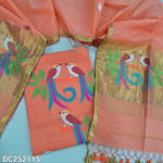 Pastel Blue muslin jamdani unstitched salwar material, thread weaving on yoke& front(thin, lining needed)NO BOTTOM, muslin jamdani full length dupatta with gold tissue pallu& paithani weaving. DC252116