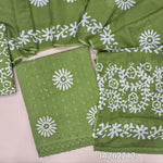 Pastel Blue schiffli embroidered pure cotton unstitched salwar material(lining needed) wax batik design allover, lace daman, batik dyed cotton bottom, batik dyed soft mul cotton full length dupatta(TAPING NEEDED). JA262213