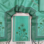 Pastel Blue silk cotton unstitched salwar material,(thin, lining needed) digital printed on yoke, matching santoon bottom, digital printed silk cotton dupatta with tassels. OC251610