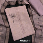Pastel blue with golden tint premium tissue linen unstitched salwar material, embroidered on front, zari buttas all over(thin, lining needed)matching silky bottom, digital printed tissue linen dupatta with zari buttas& borders. CODE MY250203