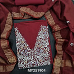 Pastel green premium cotton unstitched salwar material, heavy embroidered on yoke(lining needed)matching lining provided, NO BOTTOM, embroidered mul chanderi dupatta with zari line borders. CODE MY251902