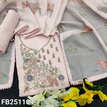 Pastel Green kota silk cotton unstitched salwar material, sweetheart neckline with heavy work on yoke(lightweight, lining needed)matching spun cotton bottom, kota silk cotton dupatta with embroidery and lace tapings Code FB251103