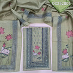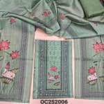 Digital Printed pastel Green silk cotton unstitched salwar material(thin, lining needed) pichwai, zardozi work on yoke, matching santoon bottom, digital printed silk cotton dupatta. OC252009