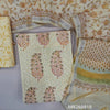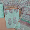 Pastel pink block printed schiffli embroidered mul cotton unstitched salwar material, panel pattern on front(lining needed)block printed cotton bottom, block printed kota cotton dupatta with gold tissue border. MR260907