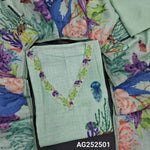 Pastel pink digital printed premium linen unstitched salwar material, v neck, hand embroidered on front(thin, lining needed)matching santoon bottom, digital printed premium linen dupatta with hand embroidery. CODE AG252502