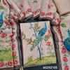 Pastel pink digital printed silk cotton unstitched salwar material, hand embroidery on yoke &front(thin, lining needed)matching santoon bottom, digital printed silk cotton dupatta with rich hand embroidery. CODE AG252102