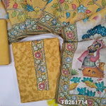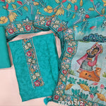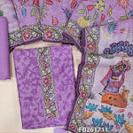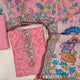 Pastel pink digital printed silk cotton unstitched salwar material,(light weight,lining needed)printed yoke with hand work, matching spun cotton bottom, kantha stitch work on colorful digital printed silk cotton dupatta. FB261713