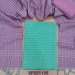 Pastel pink dobby cotton unstitched salwar material, thread woven design all over(thin, lining needed)sea green handloom cotton bottom, printed south handloom cotton dupatta. CODE SP251103