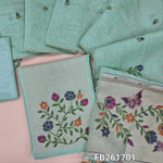 Pastel pink jamdani woven premium silk cotton unstitched salwar material(lining needed)colorful weaving on yoke, floral buttas allover, matching silky bottom, jamdani woven silk cotton full length dupatta with rich pallu and tassels. FB261702