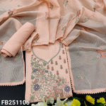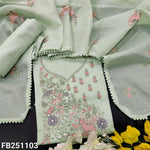 Pastel Pink kota silk cotton unstitched salwar material, sweetheart neckline with heavy work on yoke(lightweight, lining needed)matching spun cotton bottom, kota silk cotton dupatta with embroidery and lace tapings. Code FB251104