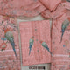 Peachish pink slub organza unstitched salwar material,(thin, lining needed) digital printed, sequence work on yoke and daman, matching santoon bottom, digital printed slub organza dupatta with lace borders. OC251304