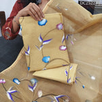 Peachish Pink kota cotton hand brush painted unstitched salwar material (lining needed) matching lining provided, drum dyed cotton bottom, kota cotton dupatta. DC252229 (TAPING NEEDED, MISPRINT ARE OT DEFFECTS)
