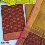 Bright pink hand block printed fancy silk cotton unstitched salwar material, double side tissue borders(thin, lining needed)dark blue cotton bottom, block printed fancy silk cotton dupatta with tissue borders. CODE JL251707
